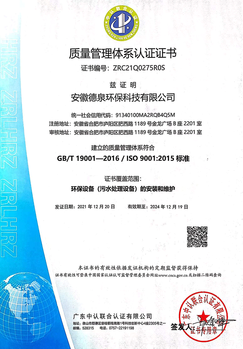 安徽德泉環(huán)保科技有限公司致力于廢水、廢氣、固廢技術(shù)處理研發(fā)、設(shè)計、施工及運(yùn)營管理,從事環(huán)保設(shè)備及設(shè)施的制造和銷售,為環(huán)保項目系統(tǒng)提供專業(yè)的技術(shù)咨詢和服務(wù)。是一家集建筑勞務(wù)分包,工程總承包(EPC)、項目投資(BOT/PPP)、運(yùn)營管理(O&M)于一體的綜合性新型高科技企業(yè)。